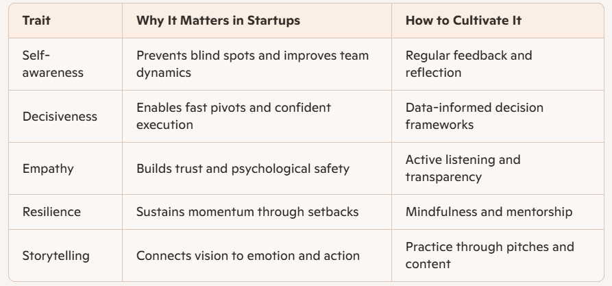 Another defining trait is adaptability. Startup leaders must be comfortable with ambiguity and quick to pivot when market feedback, client demands, or internal challenges shift the landscape. They embrace experimentation, learn from failure, and adjust without losing momentum. Decisiveness also plays a key role; leaders must make timely, informed choices even when data is incomplete or pressure is high. And finally, resilience is what sustains them through setbacks, delays, and the inevitable friction of growth. These traits don’t just shape how leaders show up; they shape how their teams perform, how their brands evolve, and how their startups survive and scale in competitive markets.